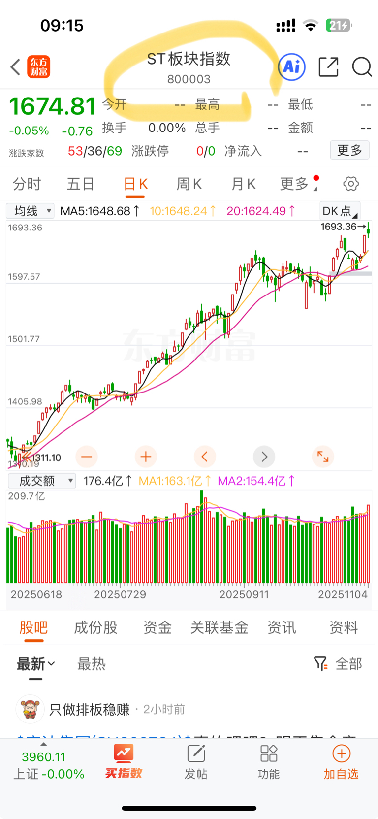 股友看看ST板块指数走势,其他ST股想疯了,精轮是最垃圾的。