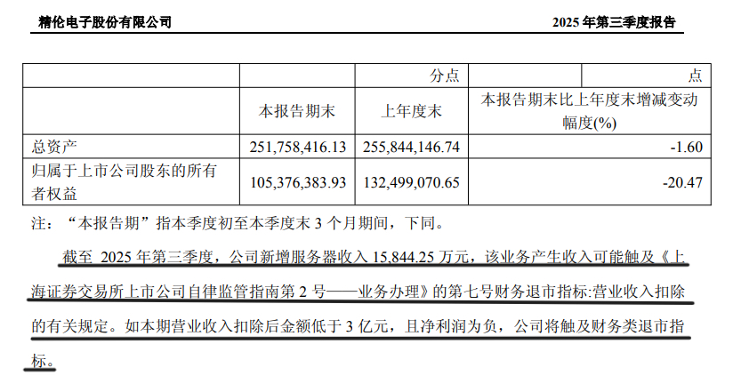 还扯年报预报那么远!季报都已经提示2.3亿恶意规避退市营收依法应扣除,这肯定不是精伦自己想说的,是监管让他们这么说的,这充分表明精伦恶意规避退市已被监管盯上并在查处,加上精伦从欺诈上市一直用财务操纵骗到现在,典型的严重违法,老账新账一起算,精伦很快就暴雷退市了!