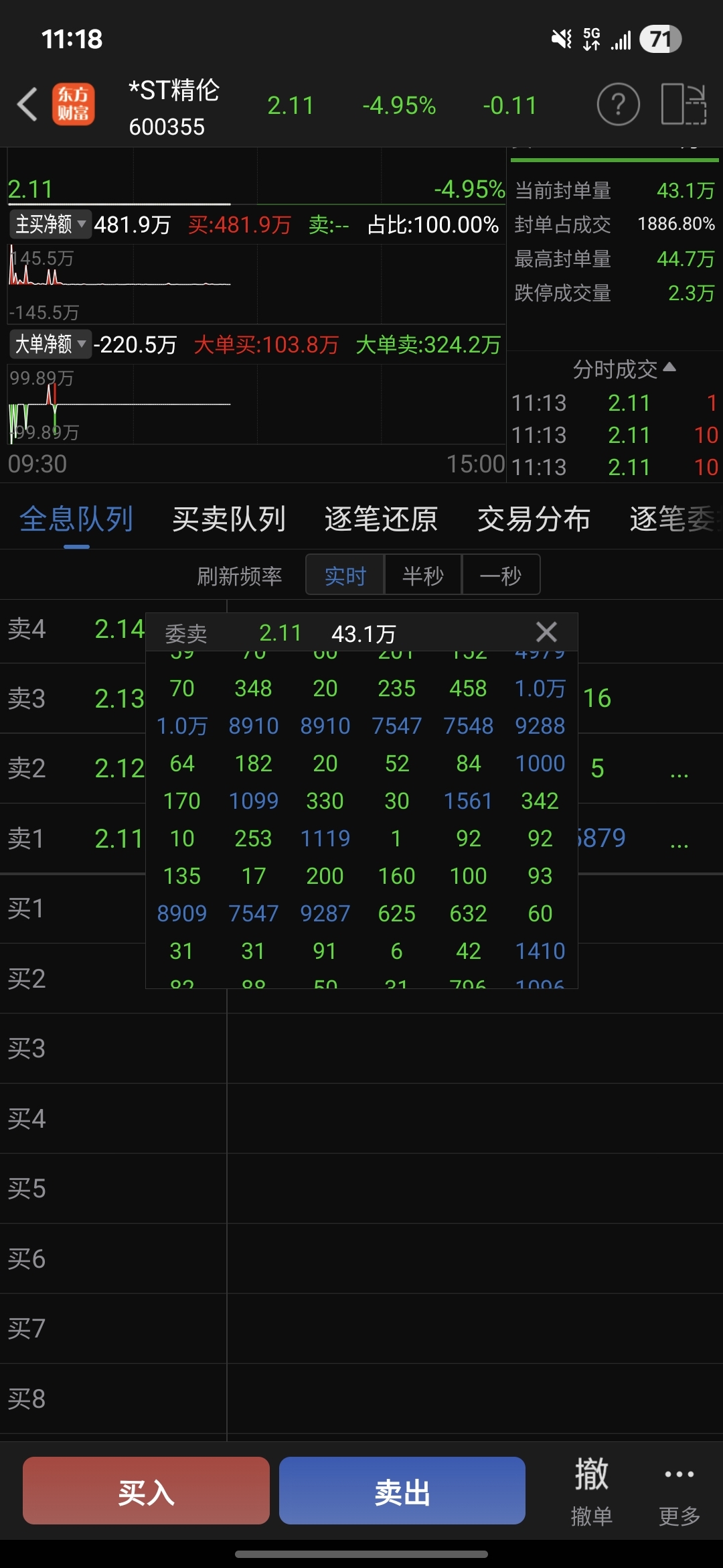 $*ST精伦(SH600355)$ 月底了确定营收不到3亿的公司都一字板跌停!别的公司异动公告里都提示风险只有这公司营收不到3亿的事儿一个字都没提。只有一个目的想让小舅子先跑的意思。至于散户能忽悠一天是一天!丧尽天良的公司……