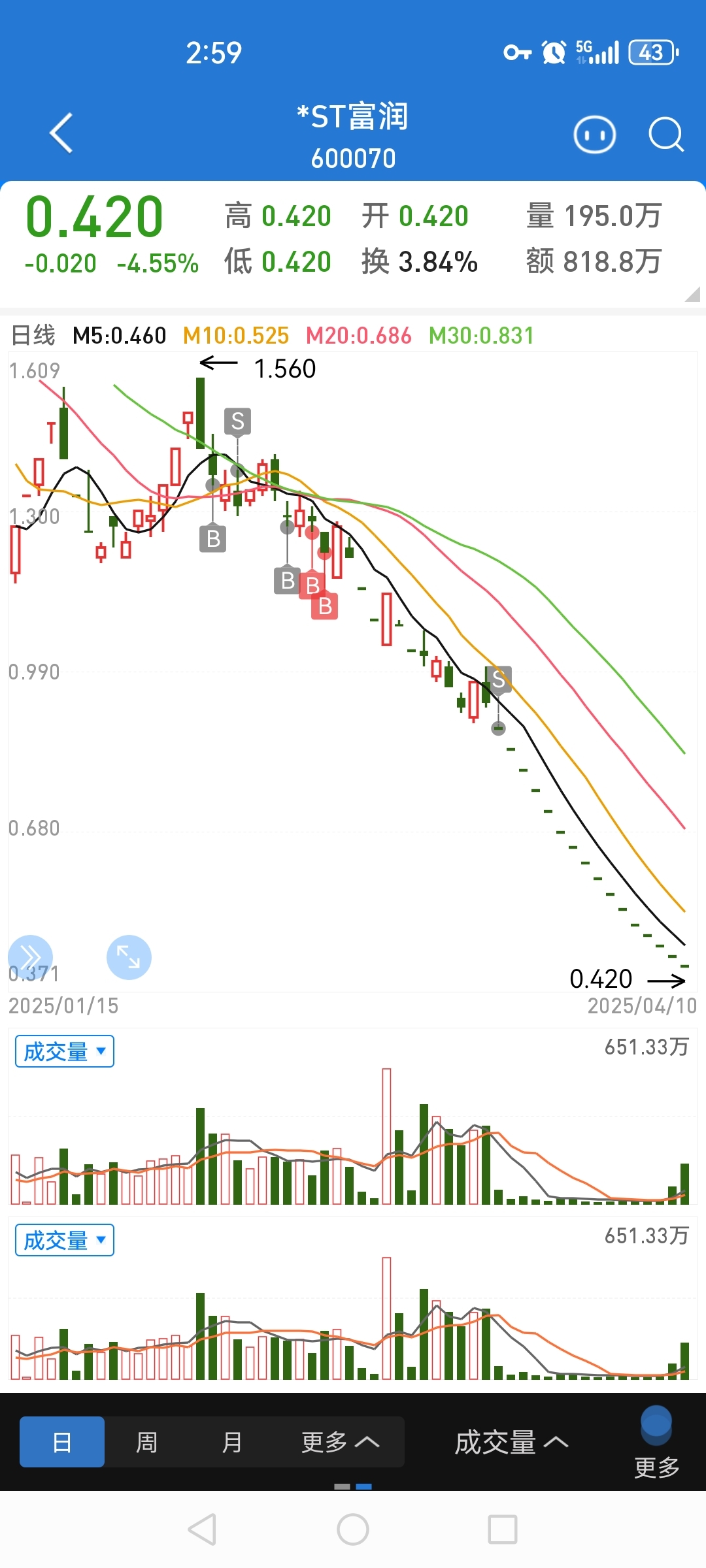 $*ST精伦(SH600355)$ 会不会和富润一样