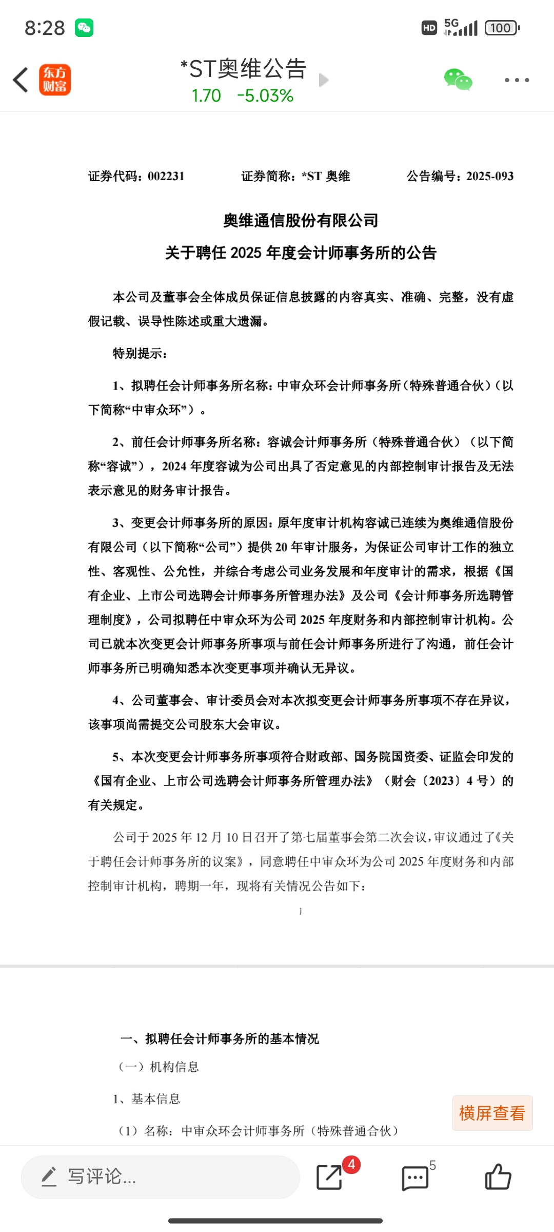 $*ST精伦(SH600355)$ 这个会计事务所专做跌停板!