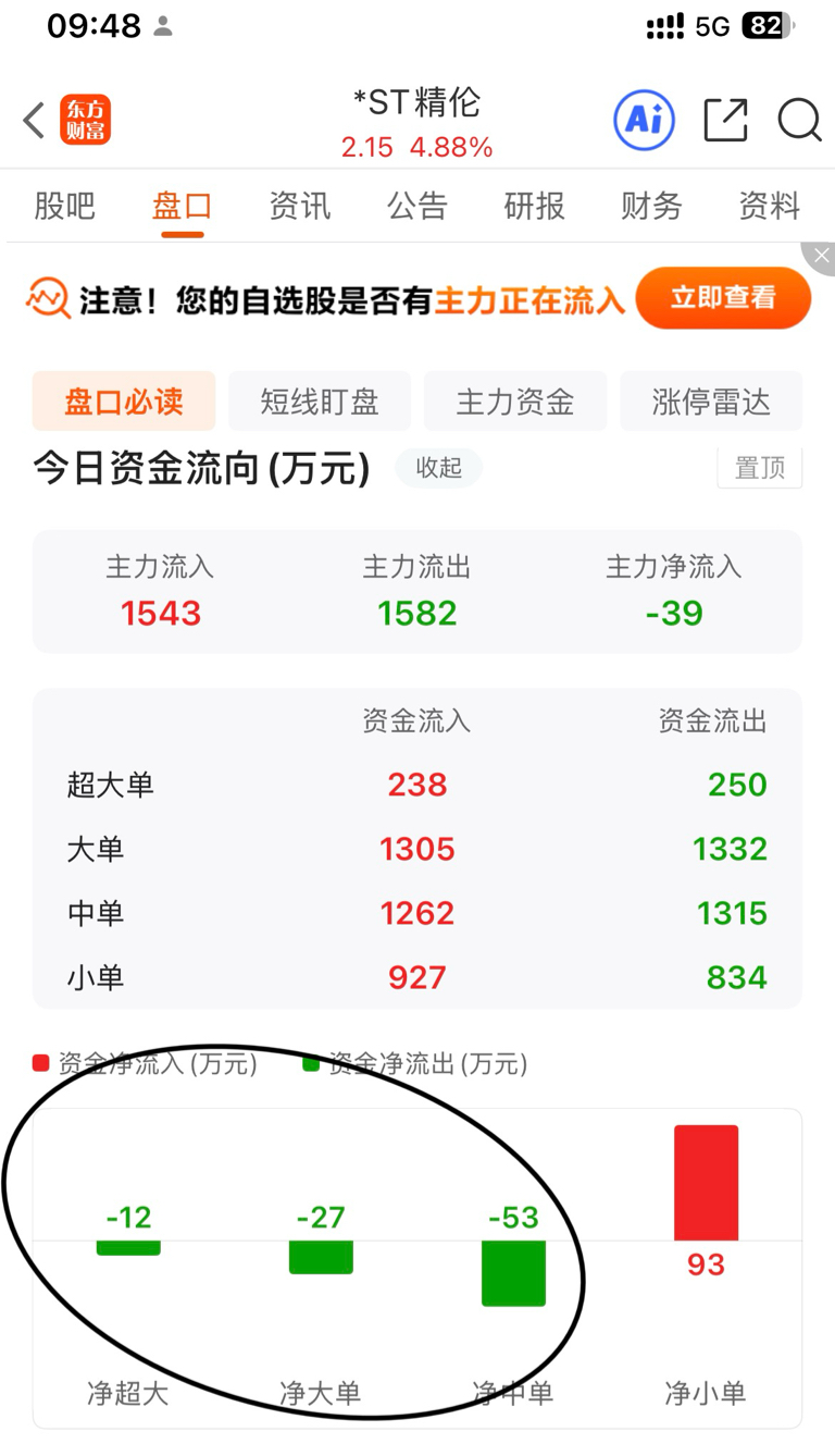 典型的恶庄违法操纵退市股价、诱多出货:超大单、大单、中单全部净卖出,跑完了就会被深套,知道内幕的大小非职工股审计会计师都先跑路了