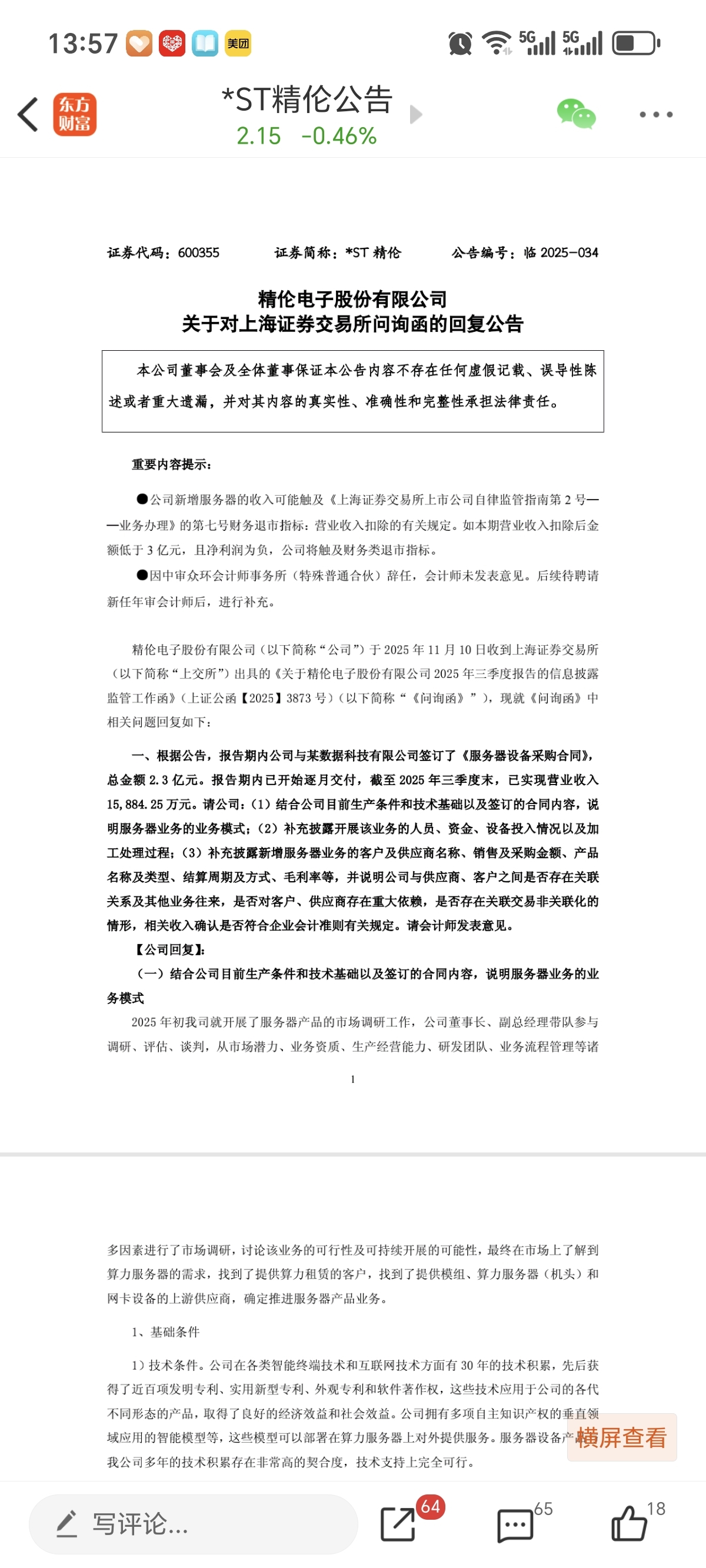 $*ST精伦(SH600355)$ 声明我不持有这个票,今天无意间看到有人说公司压问询函不发,其实他自己真是啥都不懂,现在问询函不回复根本不让发布懂吗,以前深交所st公司发布年报过不了多久就会有年报问询函,现在的模式是只要不回复,问询函统一不让发布出来!