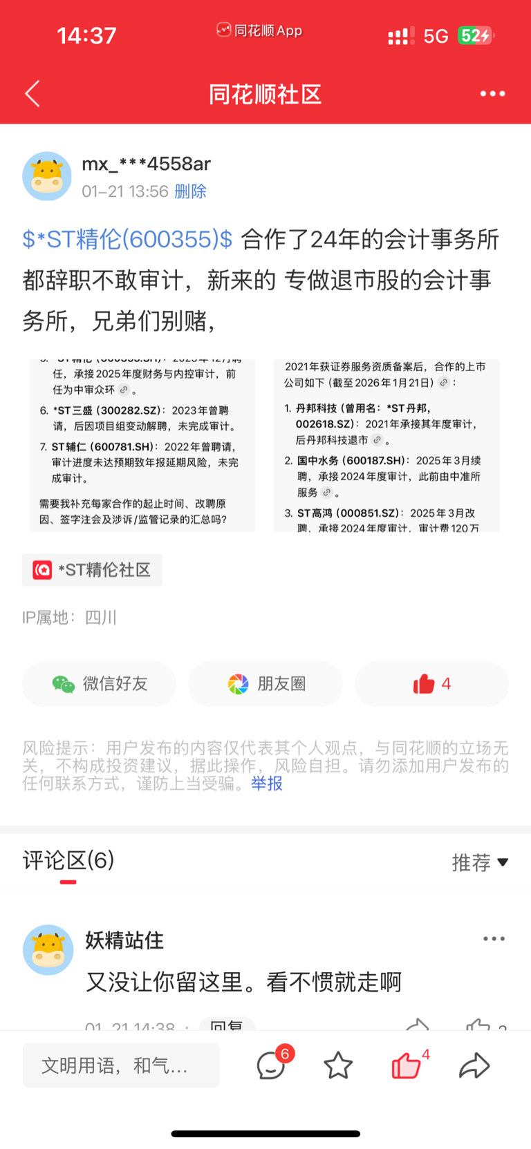 $*ST精伦(SH600355)$ 风险远大于机会,兄弟们好自为之