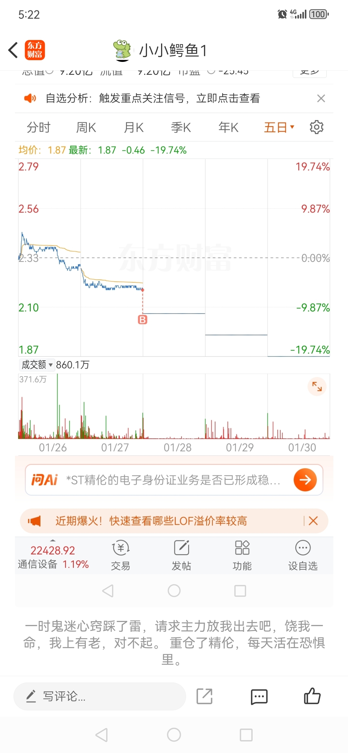 $*ST精伦(SH600355)$ 主力求求您,求求下周开一次板吧,真的很对不起,让您破费,我的钱对您来说可能只是小米,但对我来说是我的全天下了,这几天一直活在恐惧、懊悔之中,炒股几年从未有过如此恐惧与懊悔,希望您能想想办法,网开一面。 这钱是存了多年结婚用的,直到现在才明白市场的凶险,我这个投机分子到醒悟的时候手里已经没了本钱,对不起父母,对不起老师,对不起国家,抱歉。谢谢您