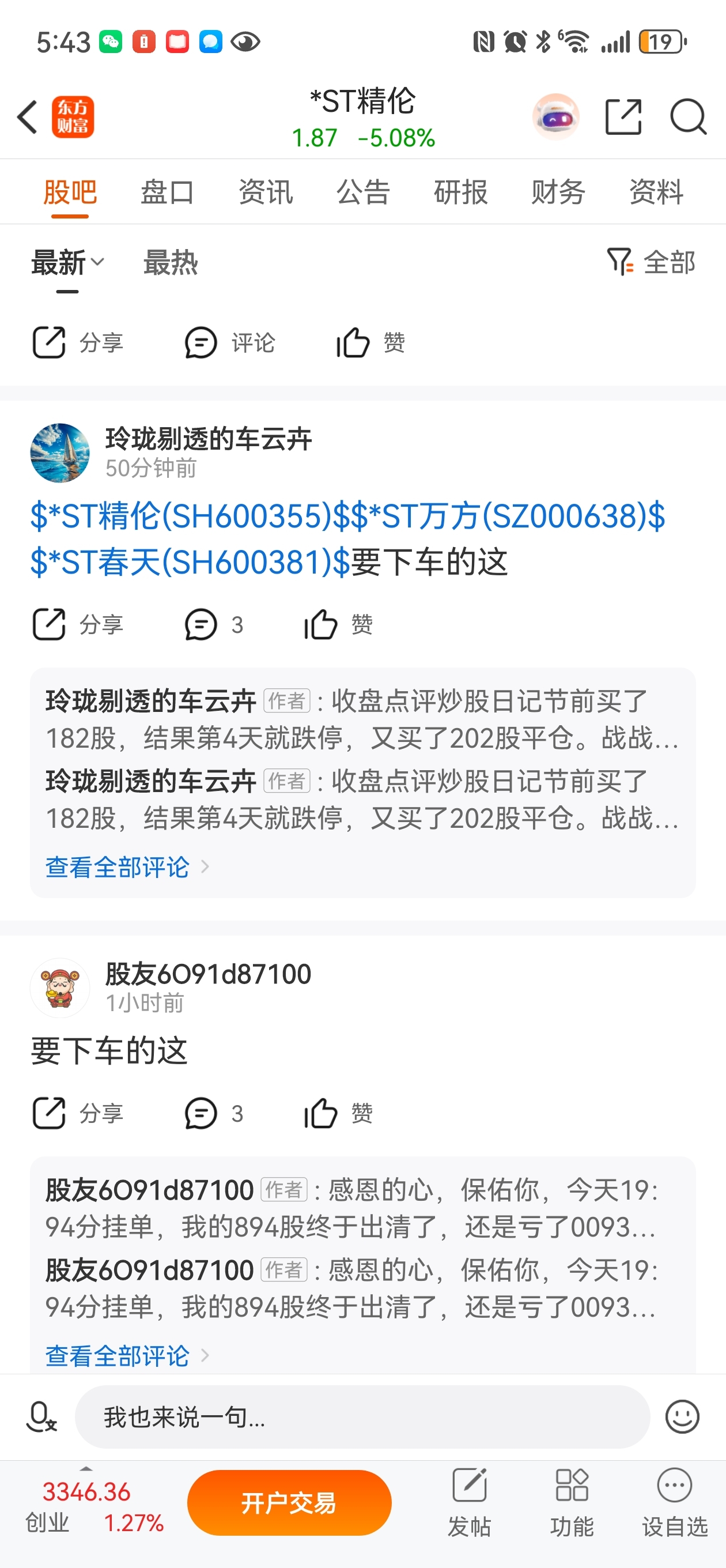 $*ST精伦(SH600355)$ 看看这些没有持股的人多着急,每天发不少贴,生怕大家看不见,还自己给自己几个评论