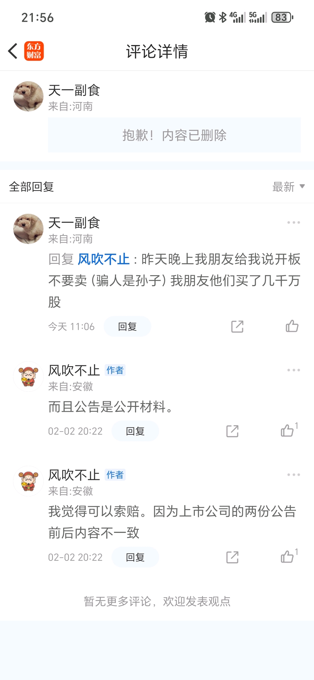 温馨提示: 1.根据《证券法》规定,禁止编造、传播虚假信息或者误导性信息,扰乱证券市场;2.用户在本社区发表的所有资料、言论等仅代表个人观点,与本网站立场无关,不对您构成任何投资建议。用户应基于自己的独立判断,自行决定证券投资并承担相应风险。《东方财富社区管理规定》