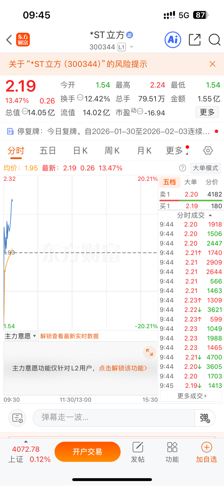 $*ST精伦(SH600355)$ 连续三年造假,即将退市的300344ST立方,股价连续暴涨,目前2.20元,精伦未来走势大家一目了然#炒股日记#