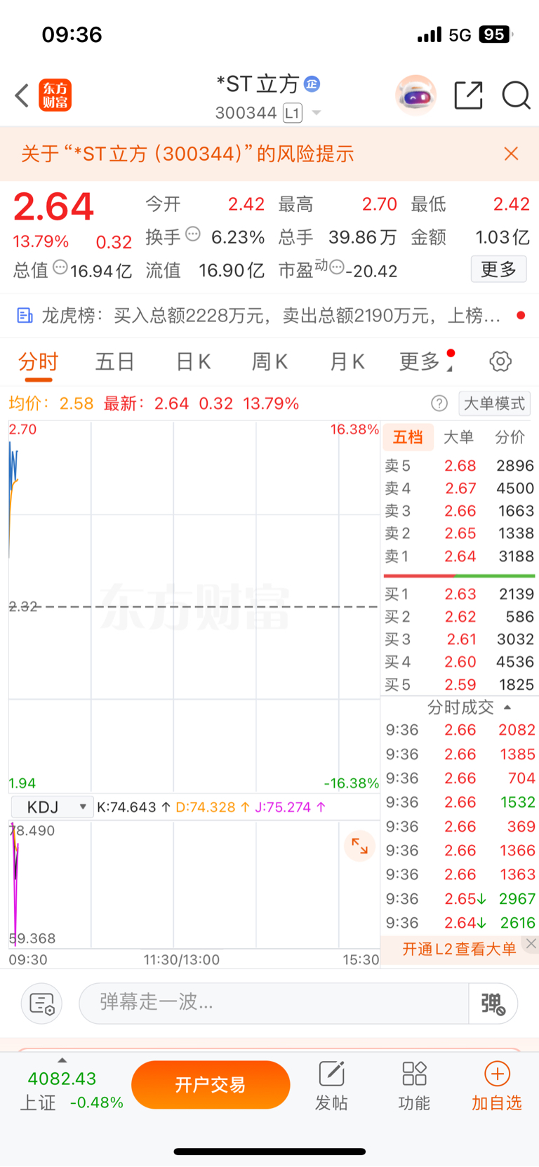 重大造假即将退市的300344st立方,连续6个涨停,股价2.89元