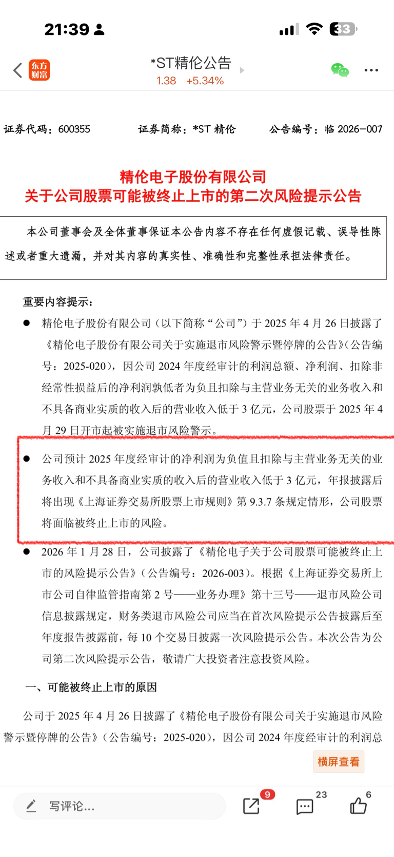 $*ST精伦(SH600355)$ 公司自己都确定了,无法满足3亿,退市已铁板钉钉,散户莫幻想,后续再次关门就真出不来了