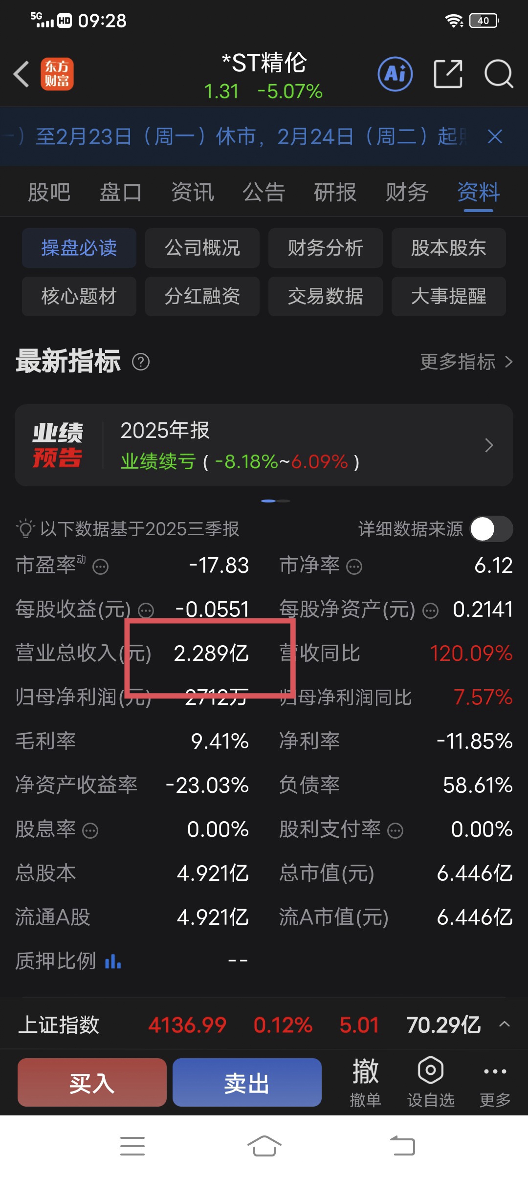 不要怕,前三季营收2.3亿,全年超3亿没有问题,快买,地天板