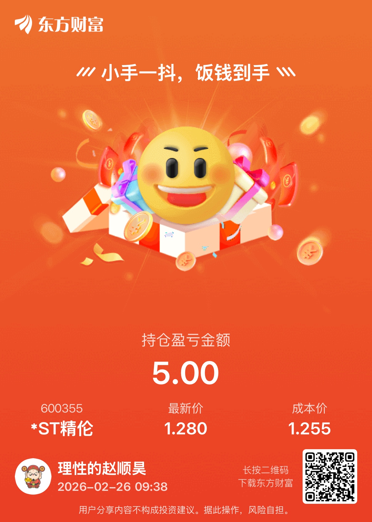 温馨提示: 1.根据《证券法》规定,禁止编造、传播虚假信息或者误导性信息,扰乱证券市场;2.用户在本社区发表的所有资料、言论等仅代表个人观点,与本网站立场无关,不对您构成任何投资建议。用户应基于自己的独立判断,自行决定证券投资并承担相应风险。《东方财富社区管理规定》