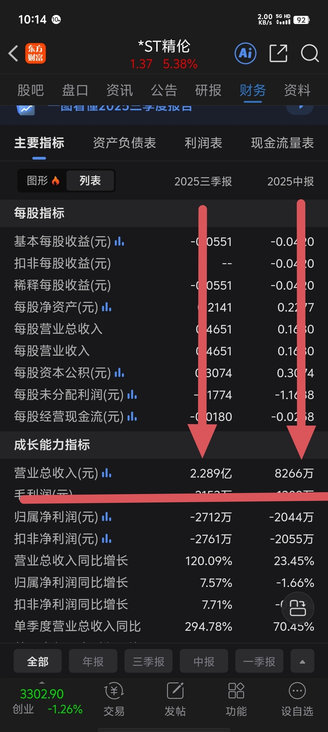 $*ST精伦(SH600355)$ 来分析一下三季度营业收入1.45亿,那四季度只要0.72亿就全年达3亿营业总收入?!