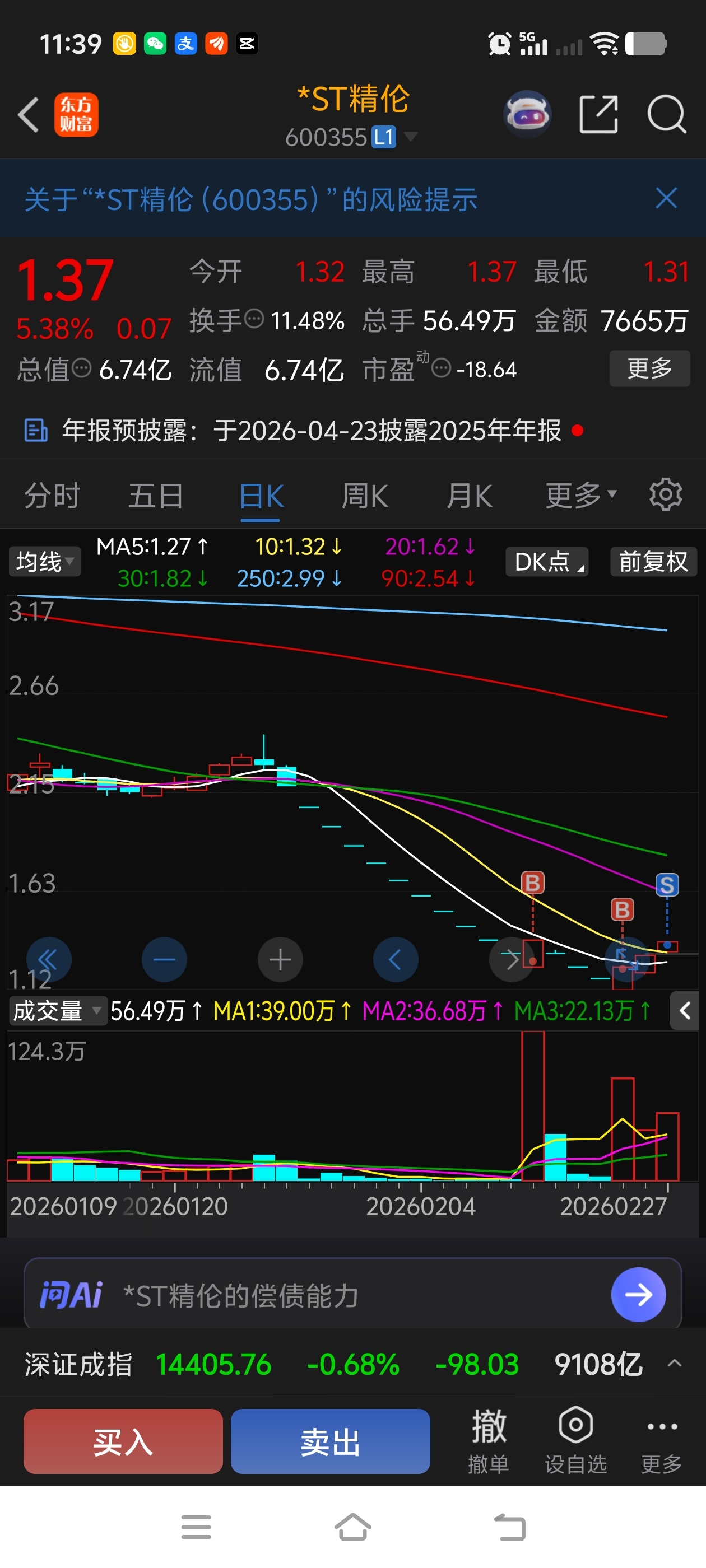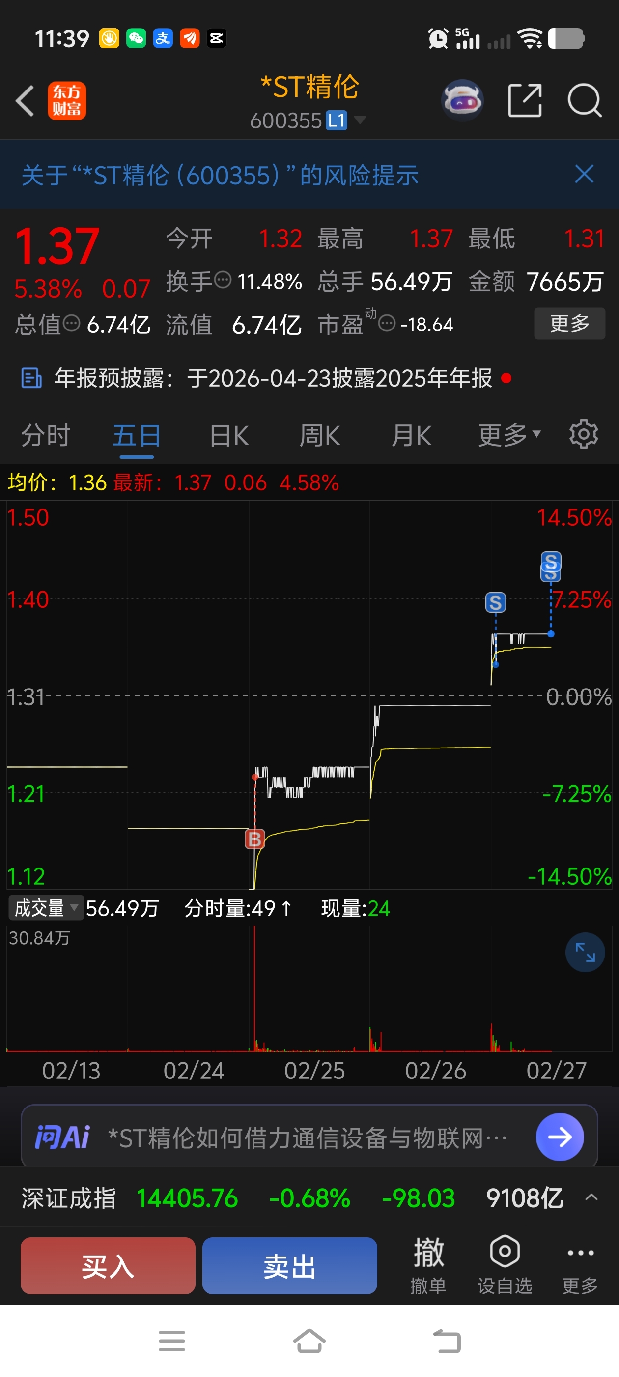 $*ST精伦(SH600355)$ 不赚最后一个铜板,等确定后不管是主板,还是老三板都有机会再相逢。祝大家一路长虹