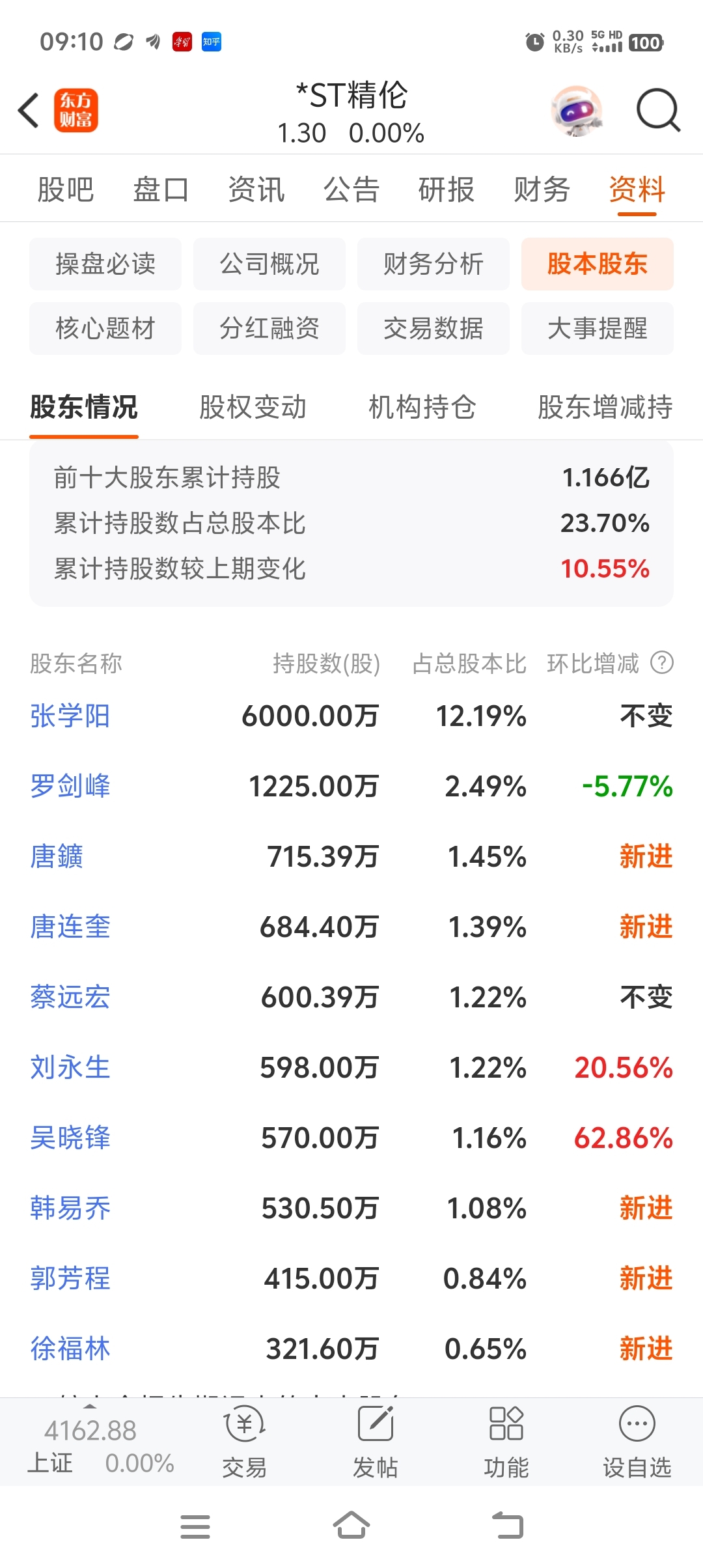 $*ST精伦(SH600355)$ 为什么大股东新进这么多筹码?