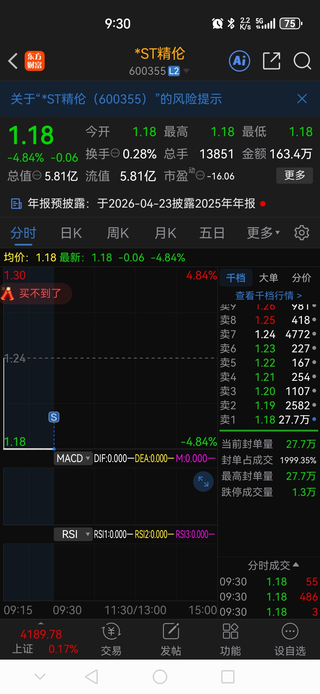 $*ST精伦(SH600355)$ 跑了跑了