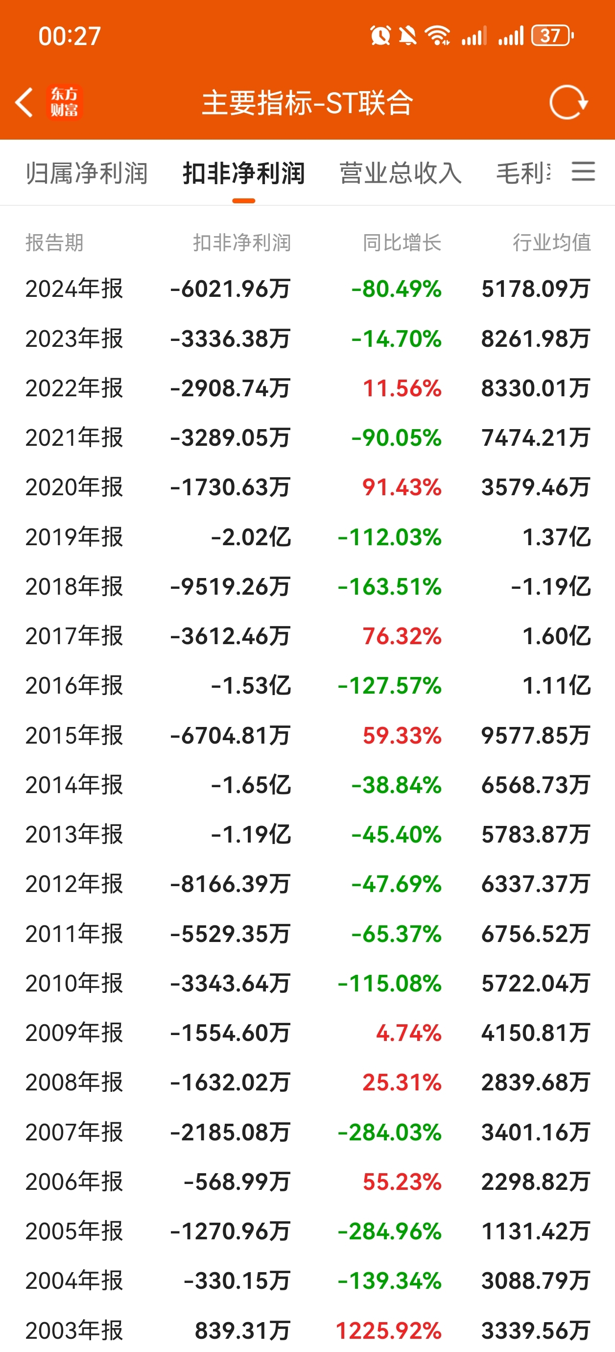 $ST联合(SH600358)$ 连续扣非净利润亏损20年?真的假的?