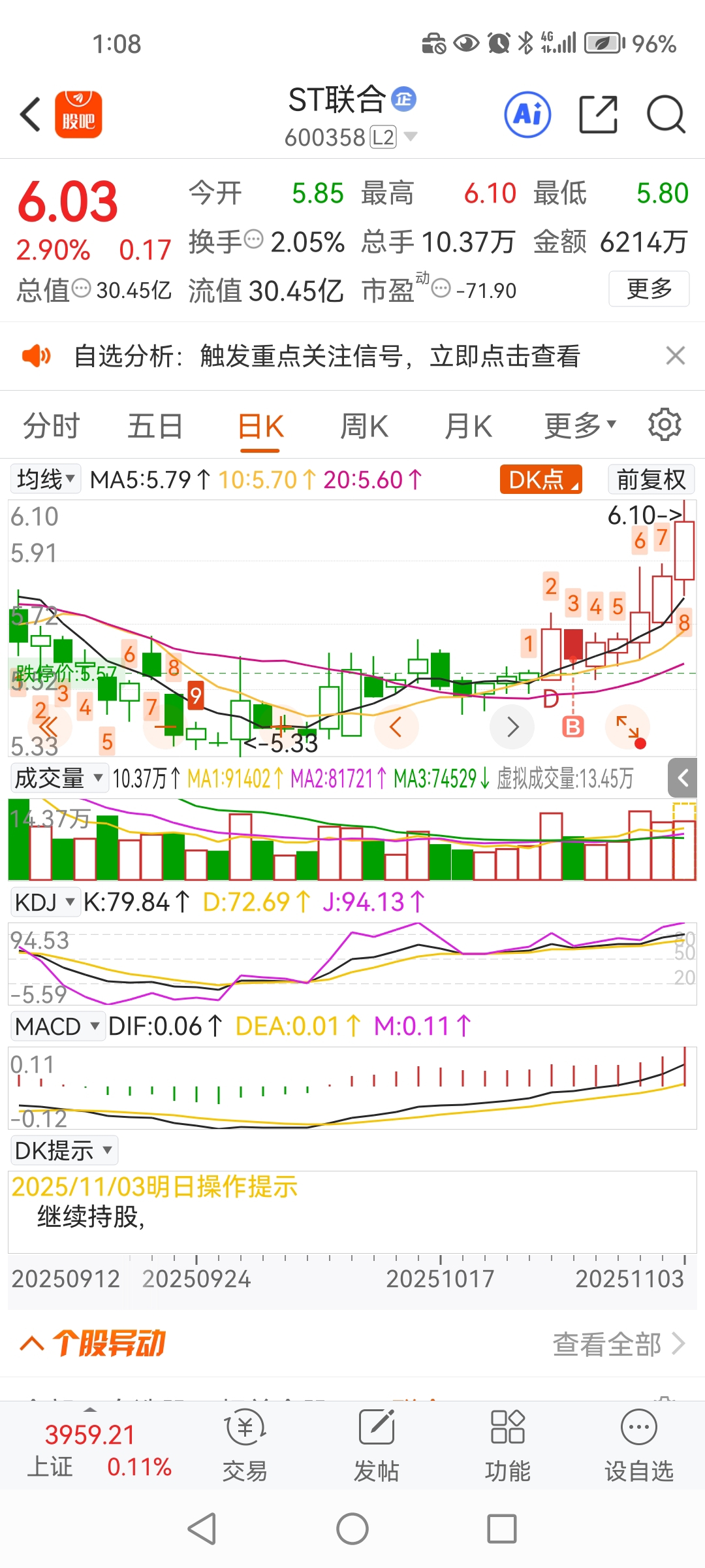 $ST联合(SH600358)$ 买进去了天天涨,只是涨的不多