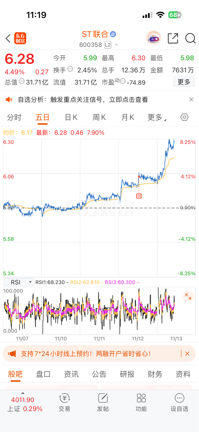 $ST联合(SH600358)$ 你小子差1毛涨停,千万别涨停啊,不然自动卖出了,我相信你还有机会