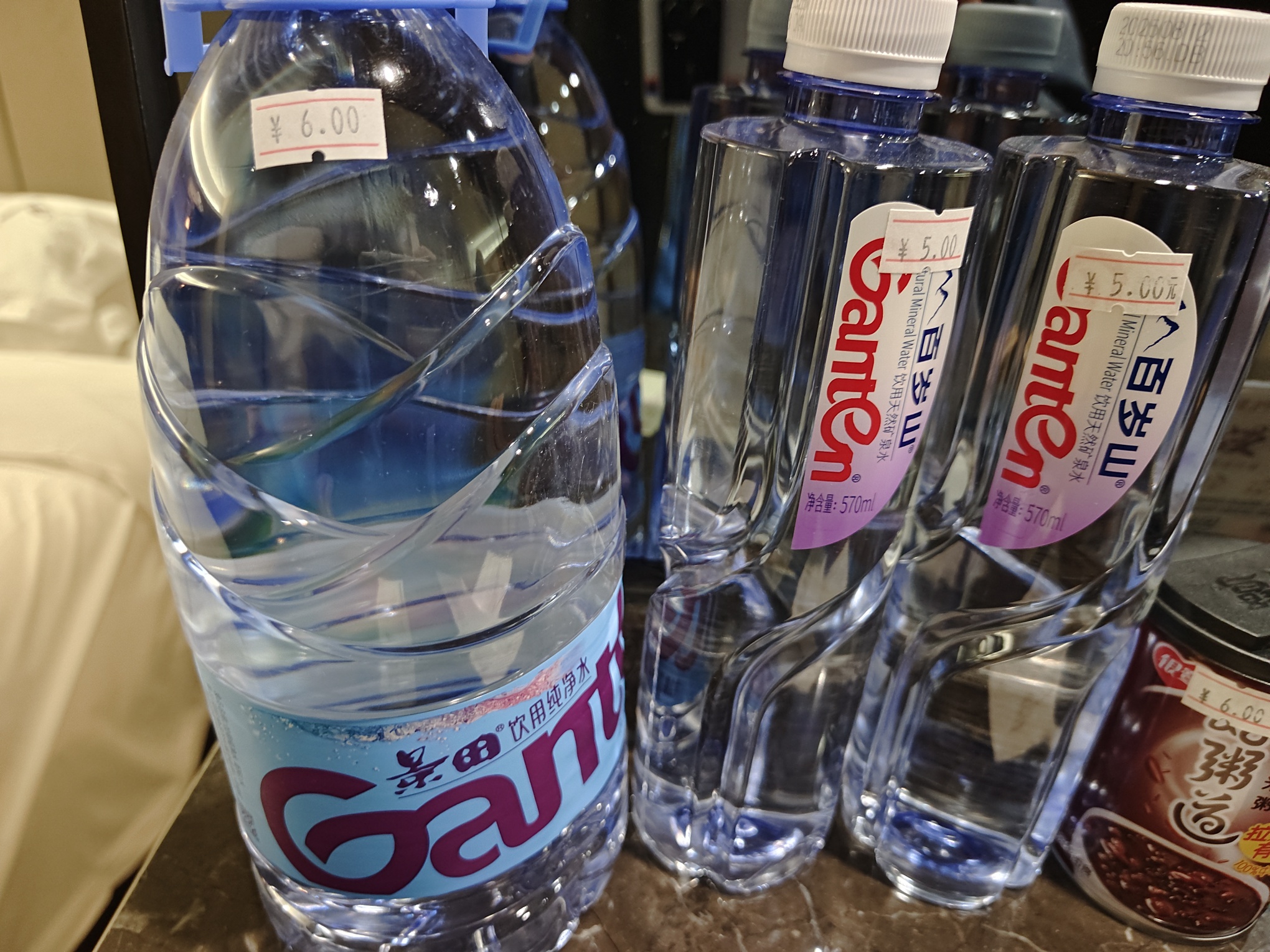 江西瑞金住酒店里面的水是农夫山泉+今天+百岁山,挺无语的