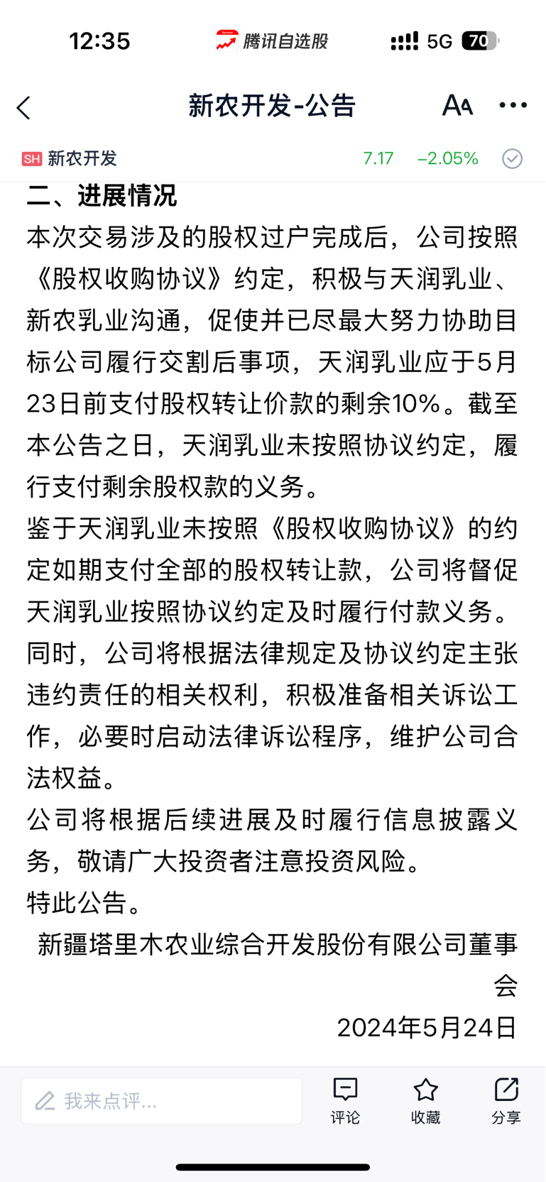 出售新农乳业几年了,尾款还没收到,别人已经获得zf补助,可笑至极,
