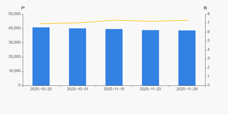 自2025年10月20日以来,公司股东户数连续4期下降,截至目前减幅为5.21%。2025年10月20日至2025年11月28日区间股价上涨5.18%。