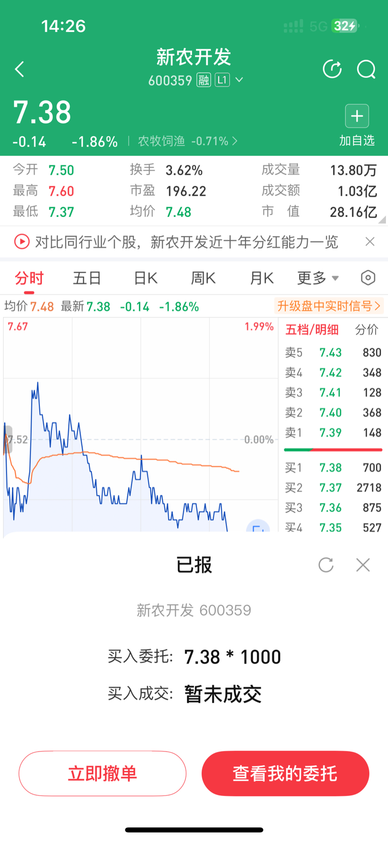 $新农开发(SH600359)$ 主力我明牌了,你继续砸我继续接