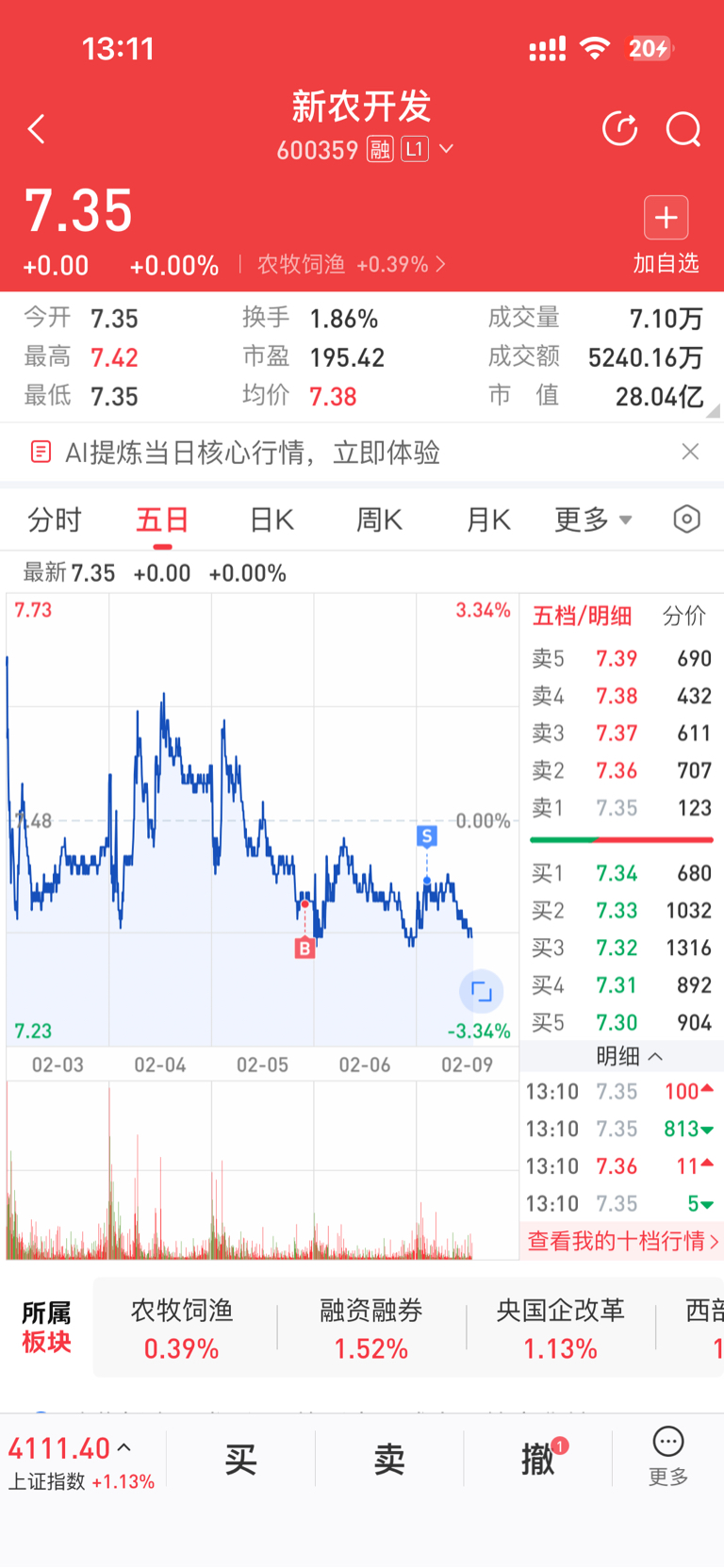 $新农开发(SH600359)$ 打持久战,7.3在接回来