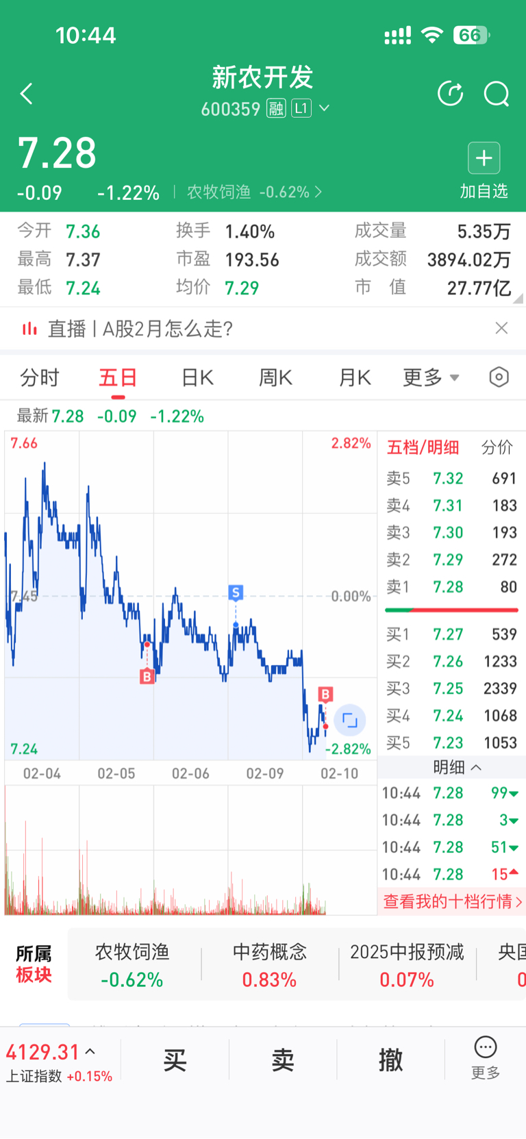 $新农开发(SH600359)$ 7.27已接回坐等拉涨