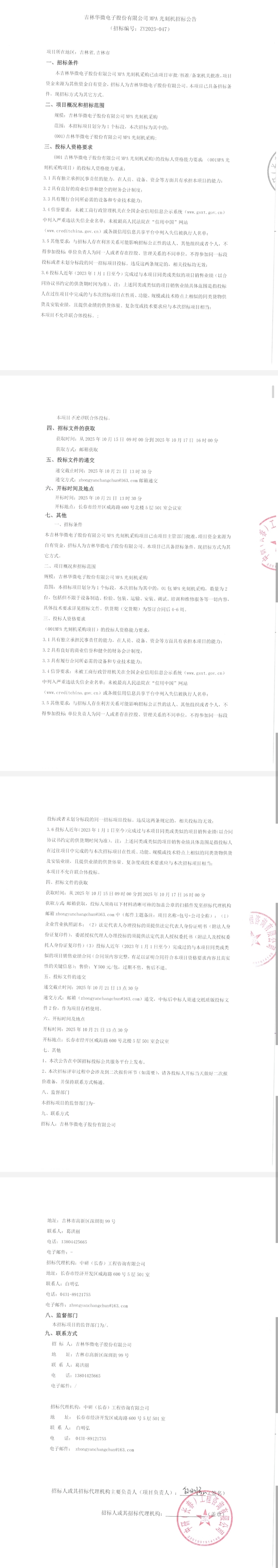 吉林华微电子股份有限公司MPA光刻机招标公告