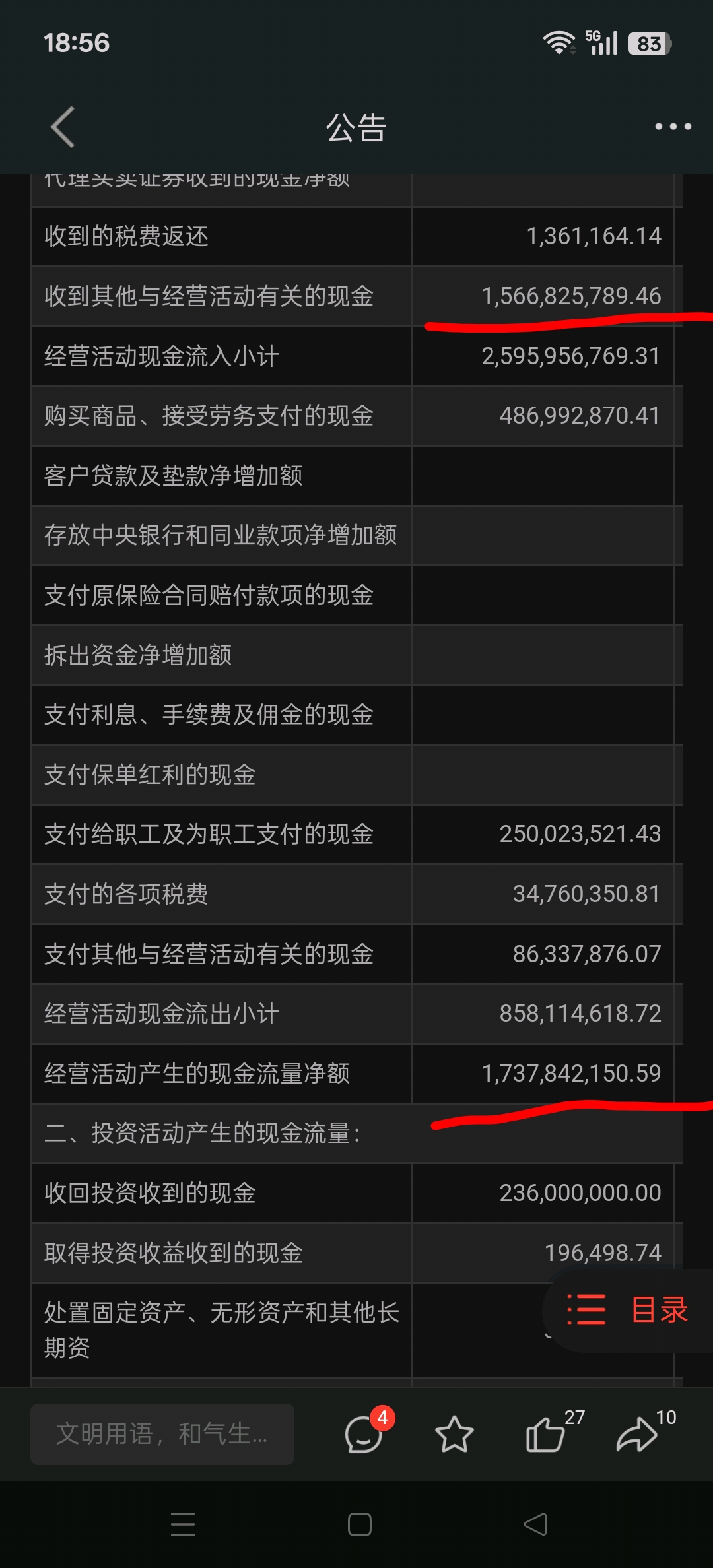 $*ST华微(SH600360)$ 鹏盛还了15.668亿?现金流还剩17.37亿?不是太懂,是这个意思吧?
