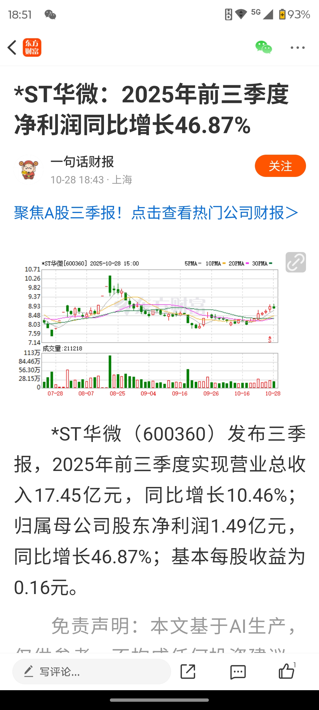 $*ST华微(SH600360)$ 华微前三季取得的业绩非常优势!包括主营、毛利率、利润都得到双位或单位数的增长,产销进入良性循环阶段,唯一遗憾的是,收回的占款所产生的利息(几仟W),为什么不做当季的帐务处理没有作任何解释!!!今季没作,公司有选择权的,但年报肯定要做,公司没权选择!!!