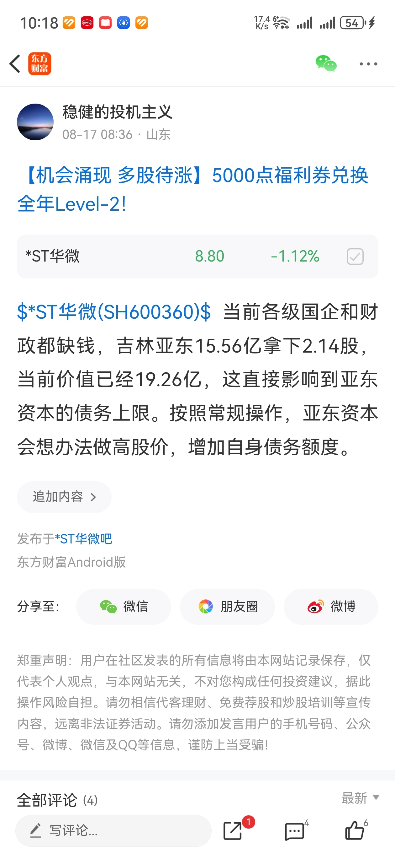 温馨提示: 1.根据《证券法》规定,禁止编造、传播虚假信息或者误导性信息,扰乱证券市场;2.用户在本社区发表的所有资料、言论等仅代表个人观点,与本网站立场无关,不对您构成任何投资建议。用户应基于自己的独立判断,自行决定证券投资并承担相应风险。《东方财富社区管理规定》