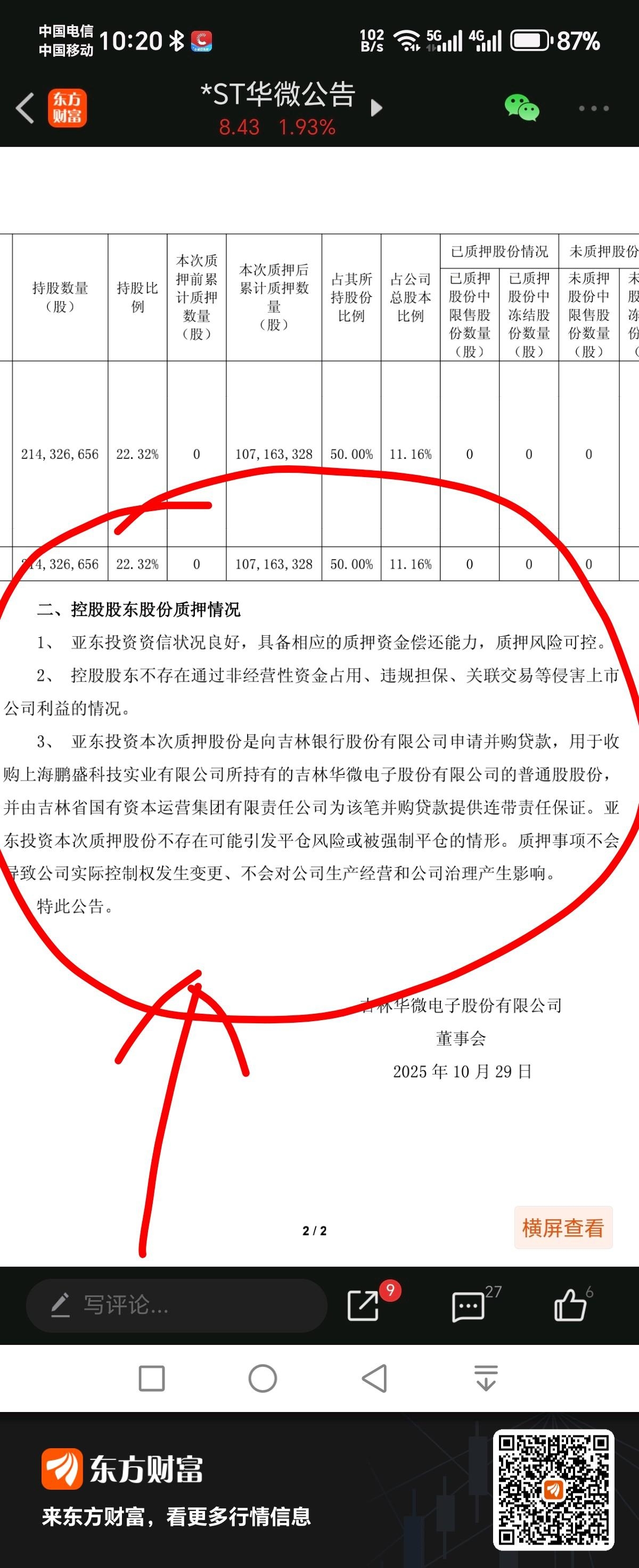 不懂就问,这次质押股份收购鹏盛普通股是上次己收购完的吗?上次收购鹏盛的股份是花了15.56亿,这次才质押了一亿多股,不到10个亿现金,根本不够上次的收购款,是不是又来了个第二次收购鹏盛手中剩余的ST华微电子普通股?
