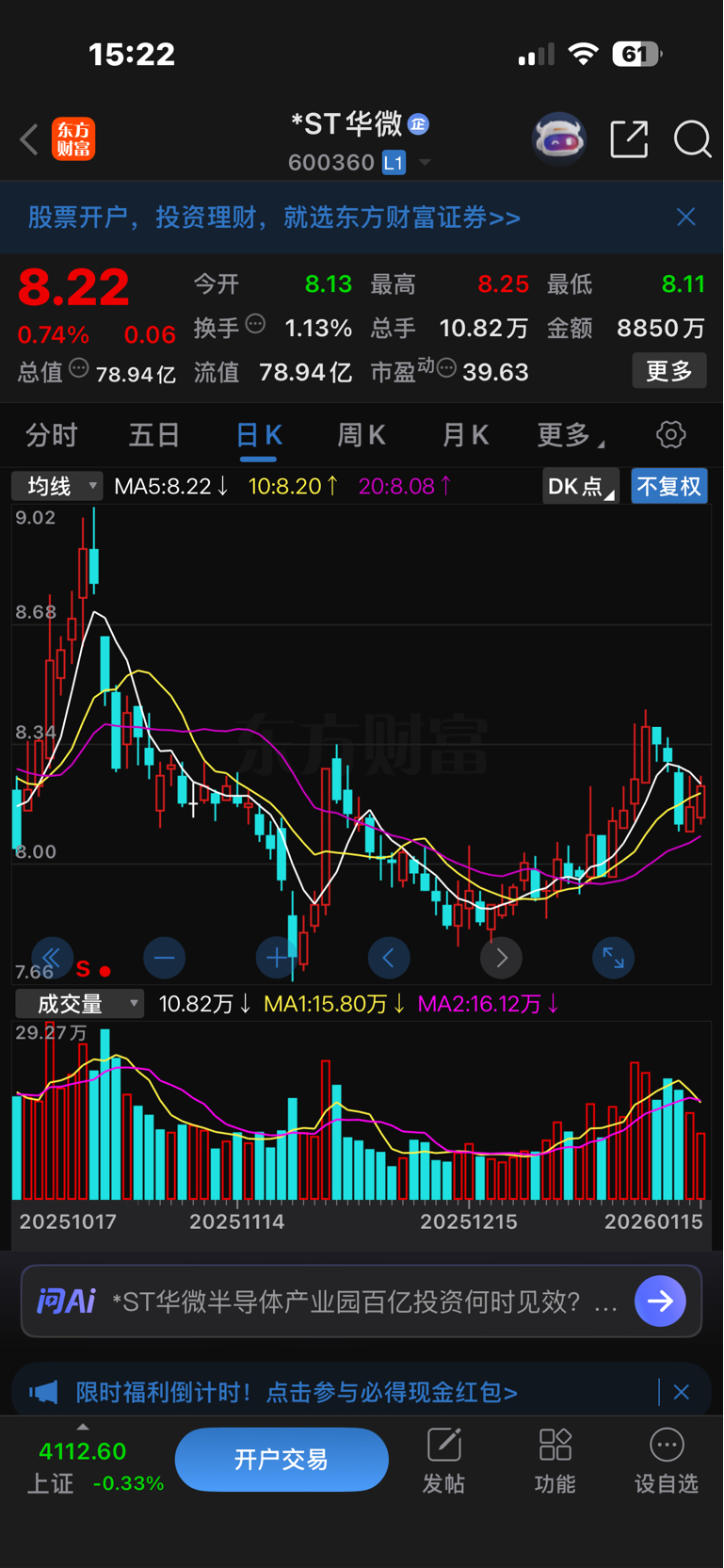 $*ST华微(SH600360)$ 今天尾盘站上五日均线,不管你们怎么想 反正我是看好华微……不离不弃的那种
