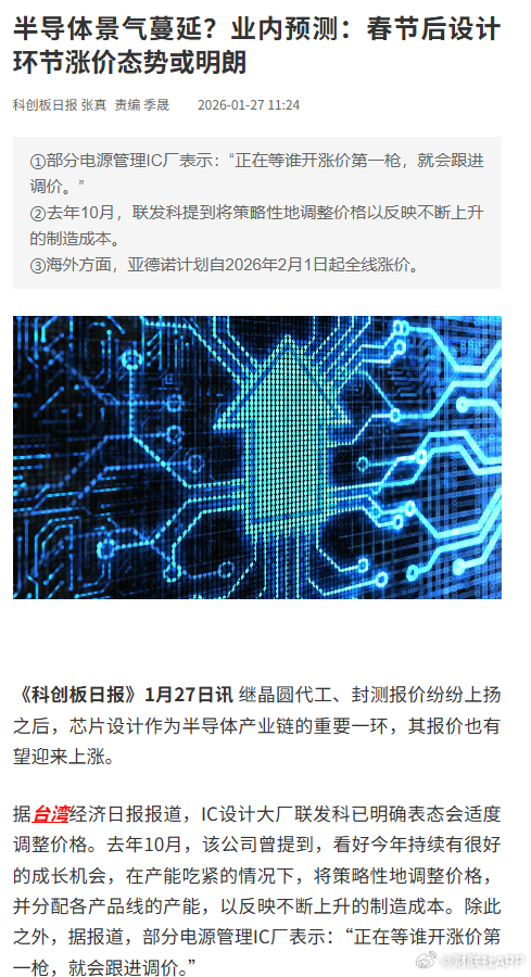 据报道,部分电源管理IC厂表示:“正在等谁开涨价第一枪,就会跟进调价。”