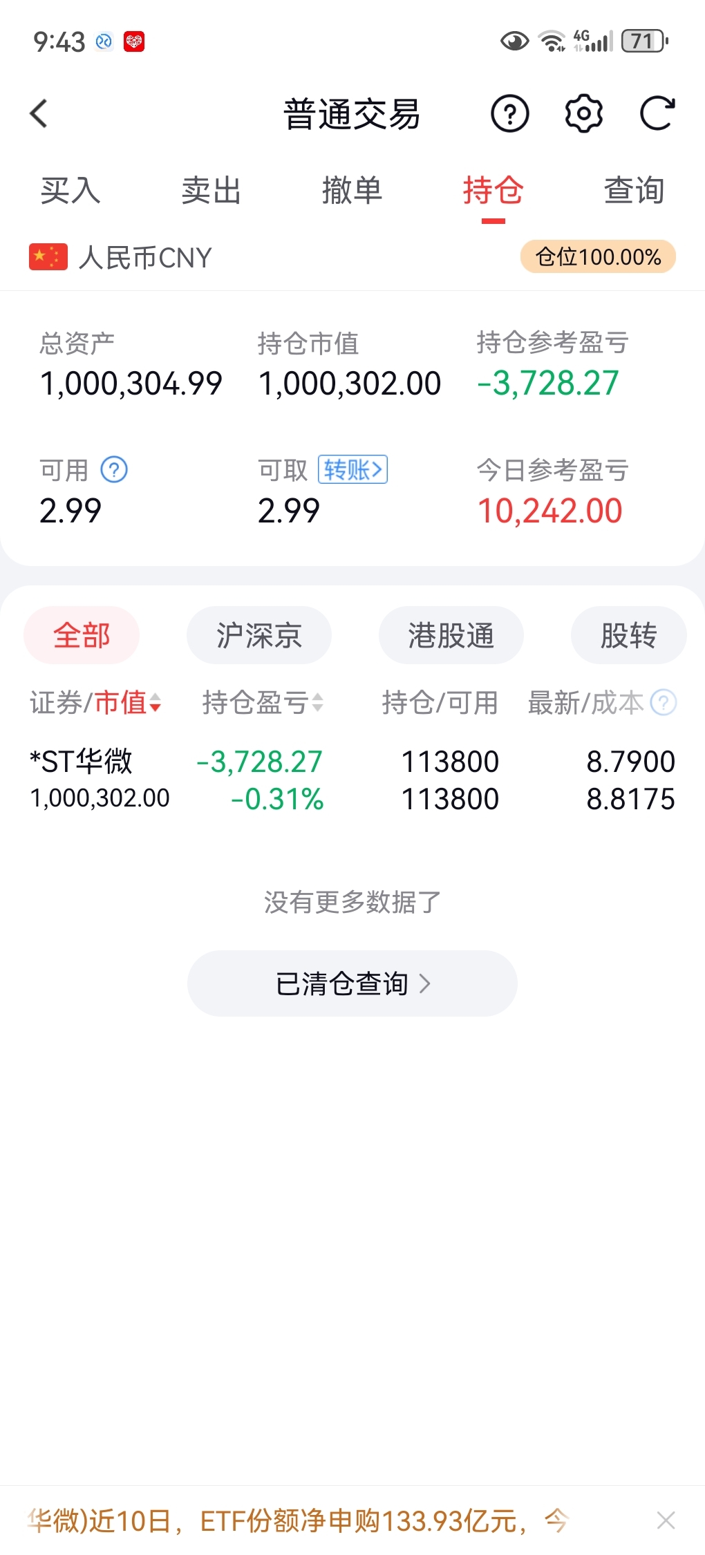 $*ST华微(SH600360)$ 我也没亏多少钱啊,这股拿着放心