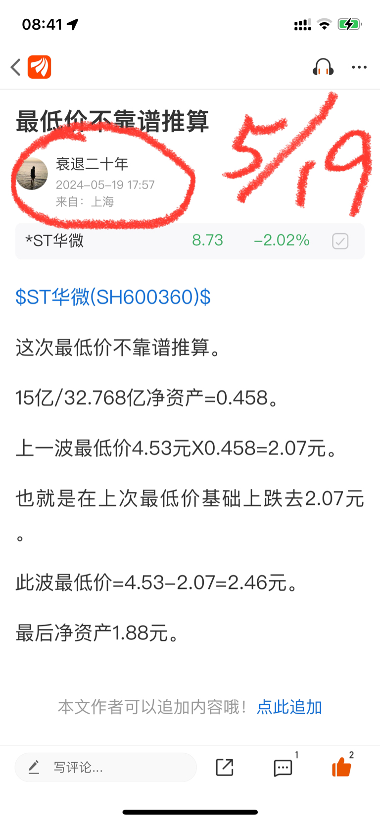 $*ST华微(SH600360)$ 比对扬杰科技和士兰微“当前估值”,华微电子股价应该在 22 元左右。随着扬杰和士兰股价的进一步上涨,华微在摘帽后由于半导体行业基金的配置需求带来的股价推升,估值修复到同步水平的时候,股价预计会到 30 元上方。
