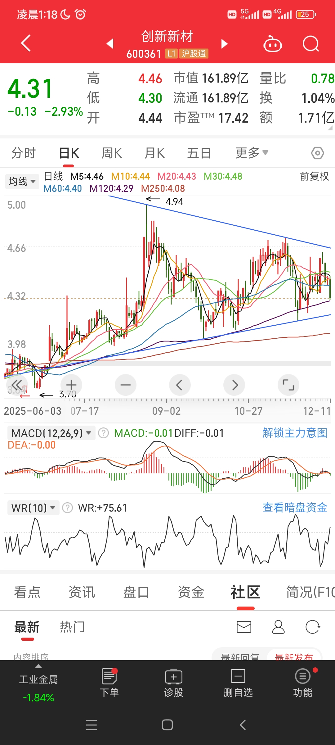$创新新材(SH600361)$ 又要摸下轨线了,你们快抄底
