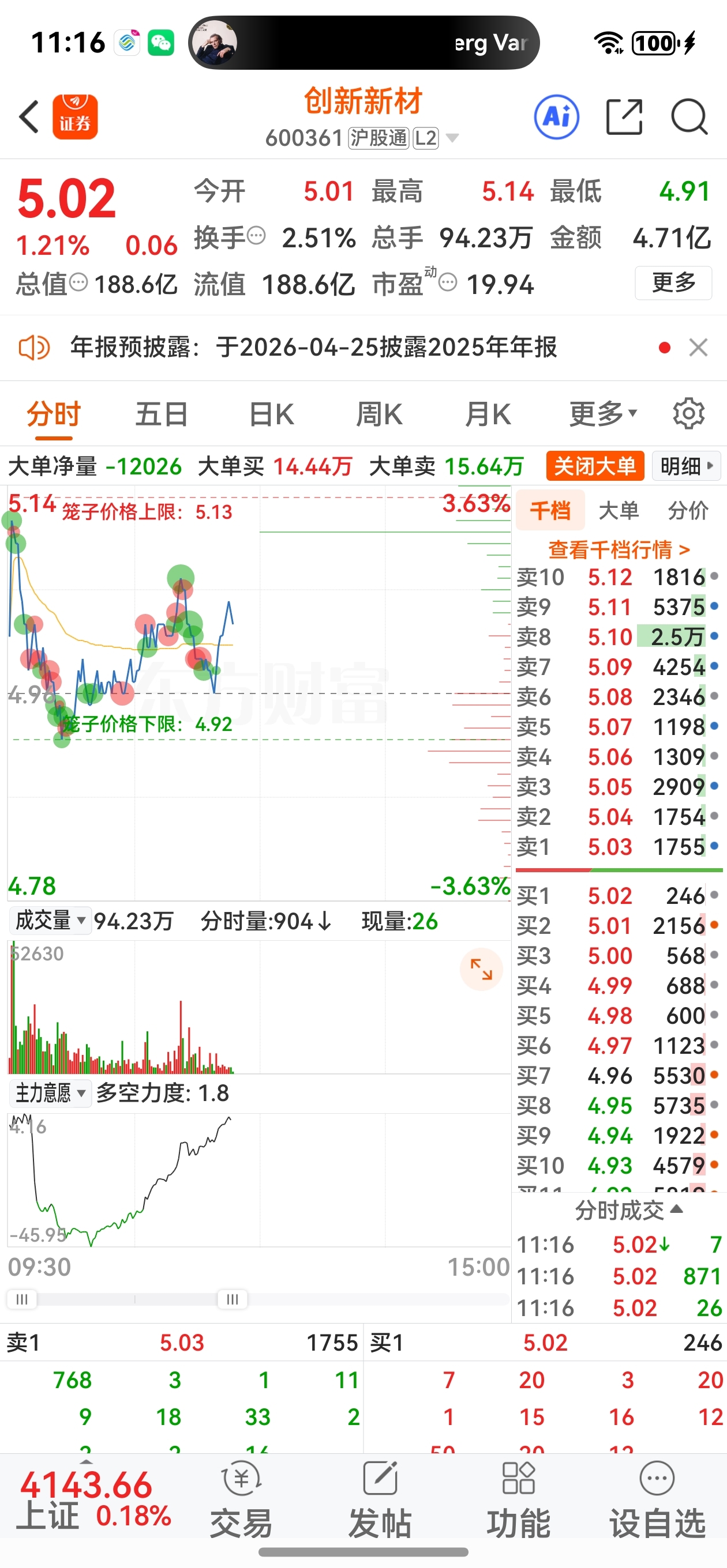 $创新新材(SH600361)$ 5.05撤了,5.10还远吗?