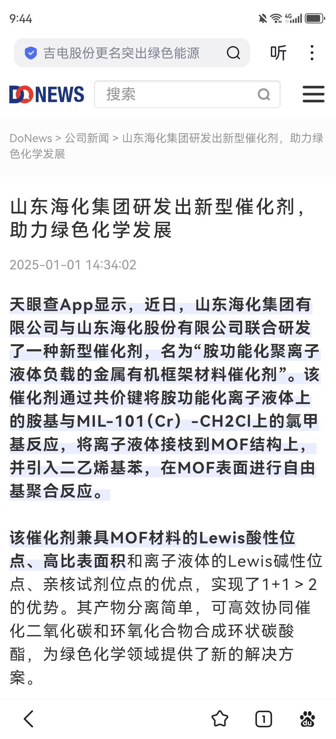 诺贝尔新材料,MOF岳阳兴长,山东海化。