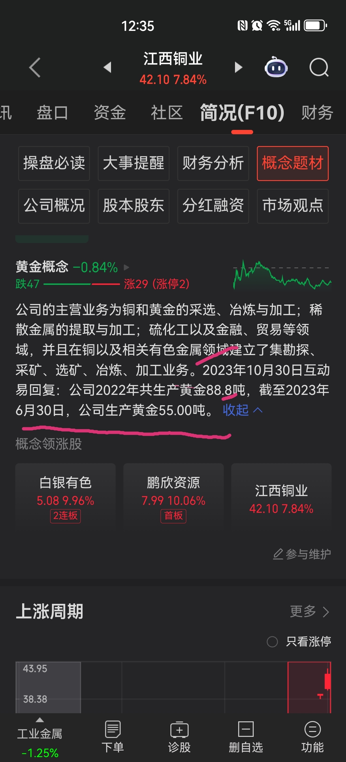 $江西铜业(SH600362)$ 最近成为龙头,,主要是金矿涨价,从公告里看,一年产80到100吨黄金,光黄金按今天的价格就是700到800亿产值!后面最少还有两个涨停!