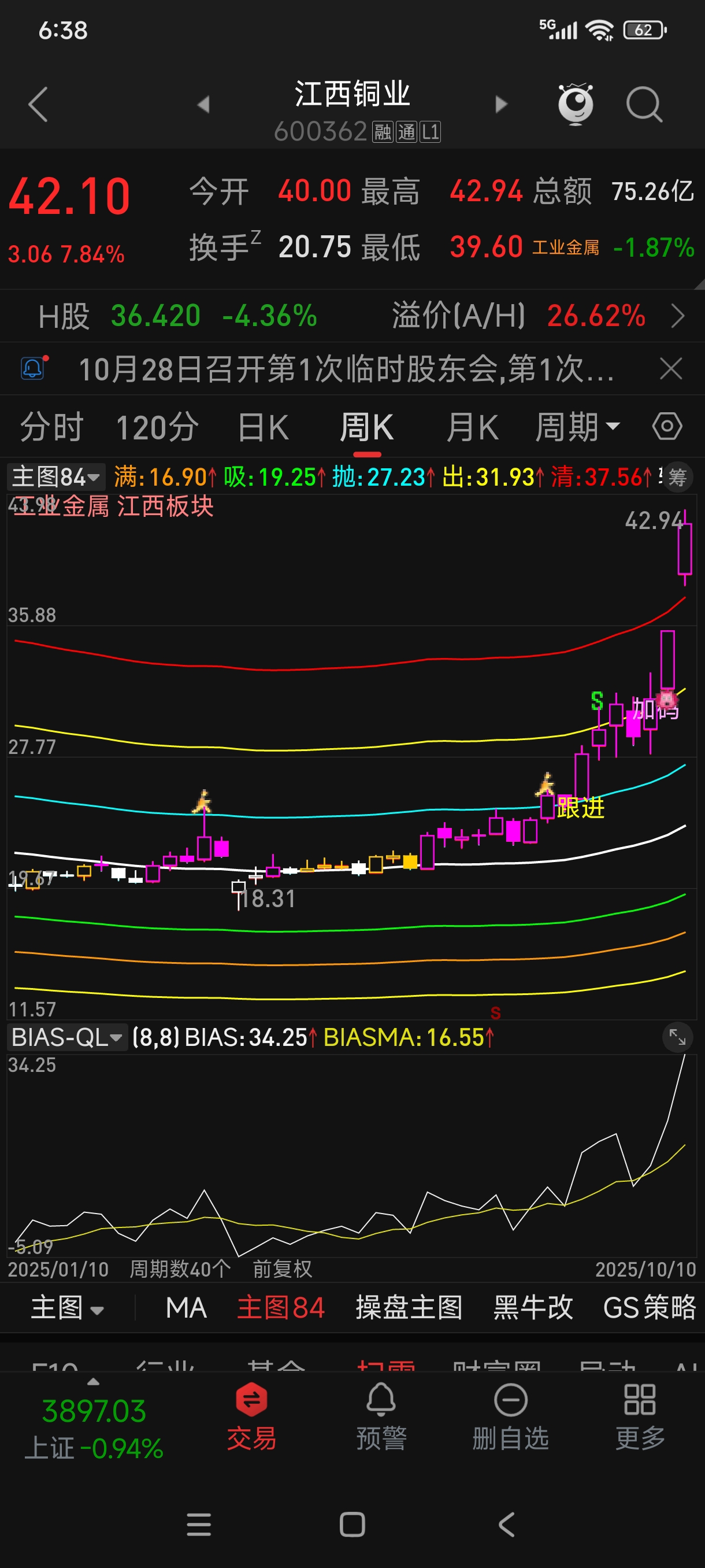 虽然我买的云铜,但是江铜已经先一步正式突破了,调整一周,会一直涨到120块