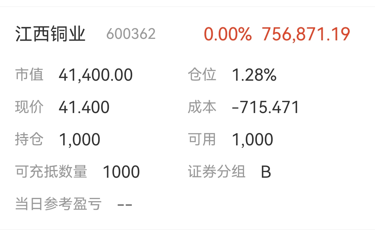 $江西铜业(SH600362)$ 35400股,上周五把大部分都卖了,还留了1000股。把机会留给股友们。