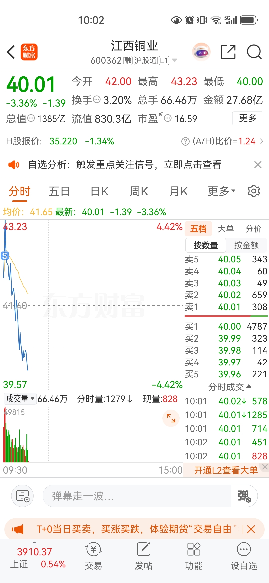 $江西铜业(SH600362)$ 碰到利好高开的情况冲高就跑,10次有9次不会错,如果是真的利好可以等风头过了再接回来