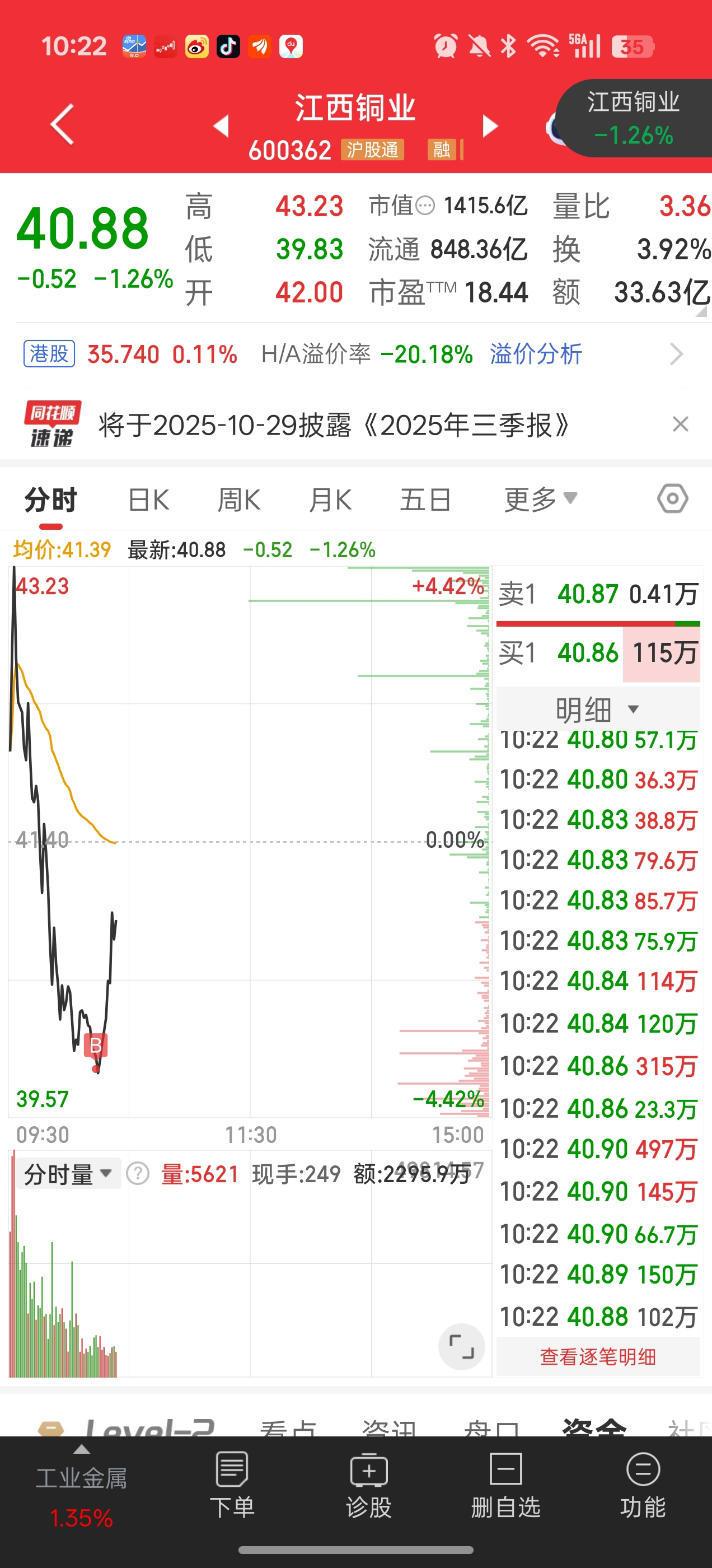 $江西铜业(SH600362)$ 今天继续加一笔江铜
