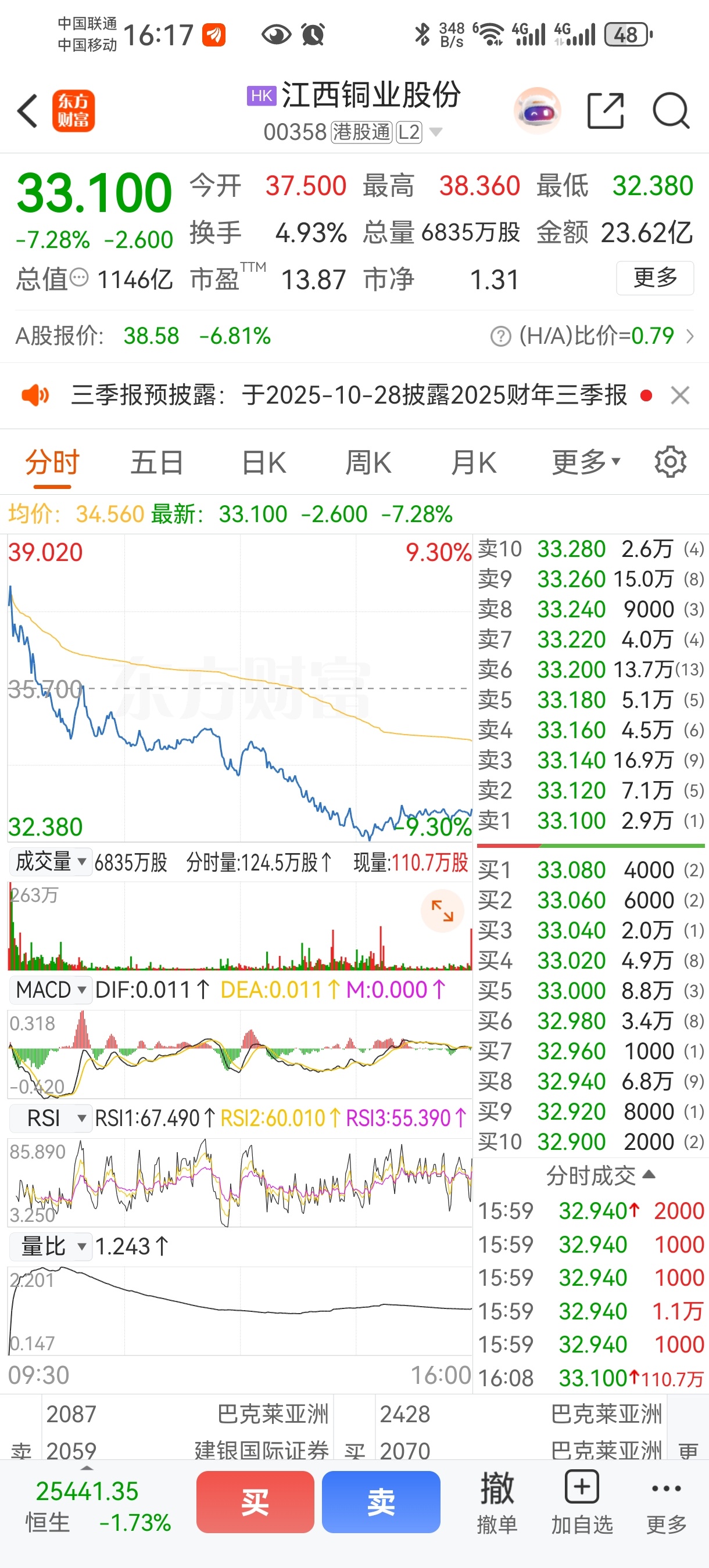 $江西铜业(SH600362)$ 尾盘抢筹,明天问题不大,往上冲