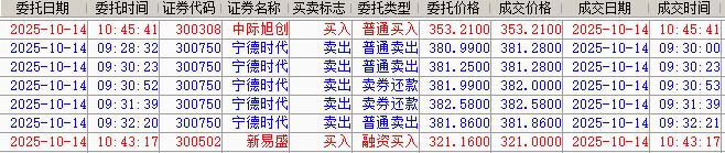雨朦胧开盘吃货开盘在369.45元吃入宁德时代给套,开盘在63.09元吃入工业富联给套,开盘在42.72吃入三花智控给套。开盘在39.82吃入江西铜业给套,不知道 谁最好,因为这些股票都是做多的股票,不过今天周四主力都在出货,所以雨朦胧接了一点主力出货的股票,仓位全仓吃货。开盘在39.82吃入江西铜业给套,
