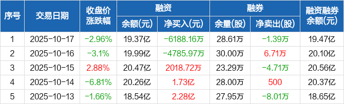 江西铜业:融资净偿还6188.16万元,融资余额19.37亿元(10-17)