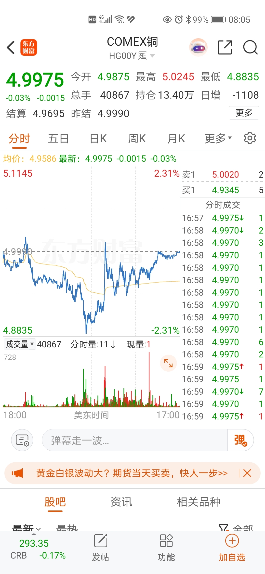 $江西铜业(SH600362)$ 昨天期铜白天A股开盘时间一路下跌,但是晚上一路反攻。周一开盘应该会高开反弹